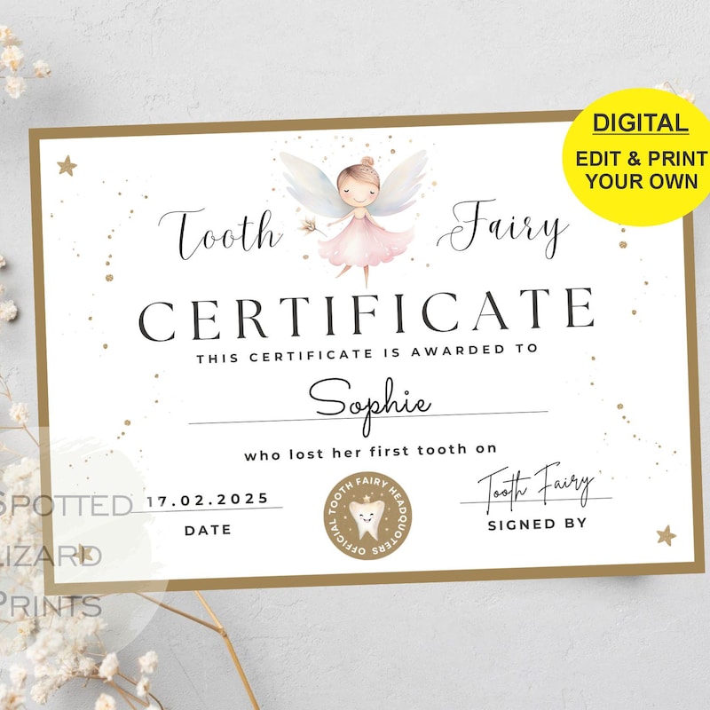 Printable Tooth Fairy Certificate (For Boy Or Girl)