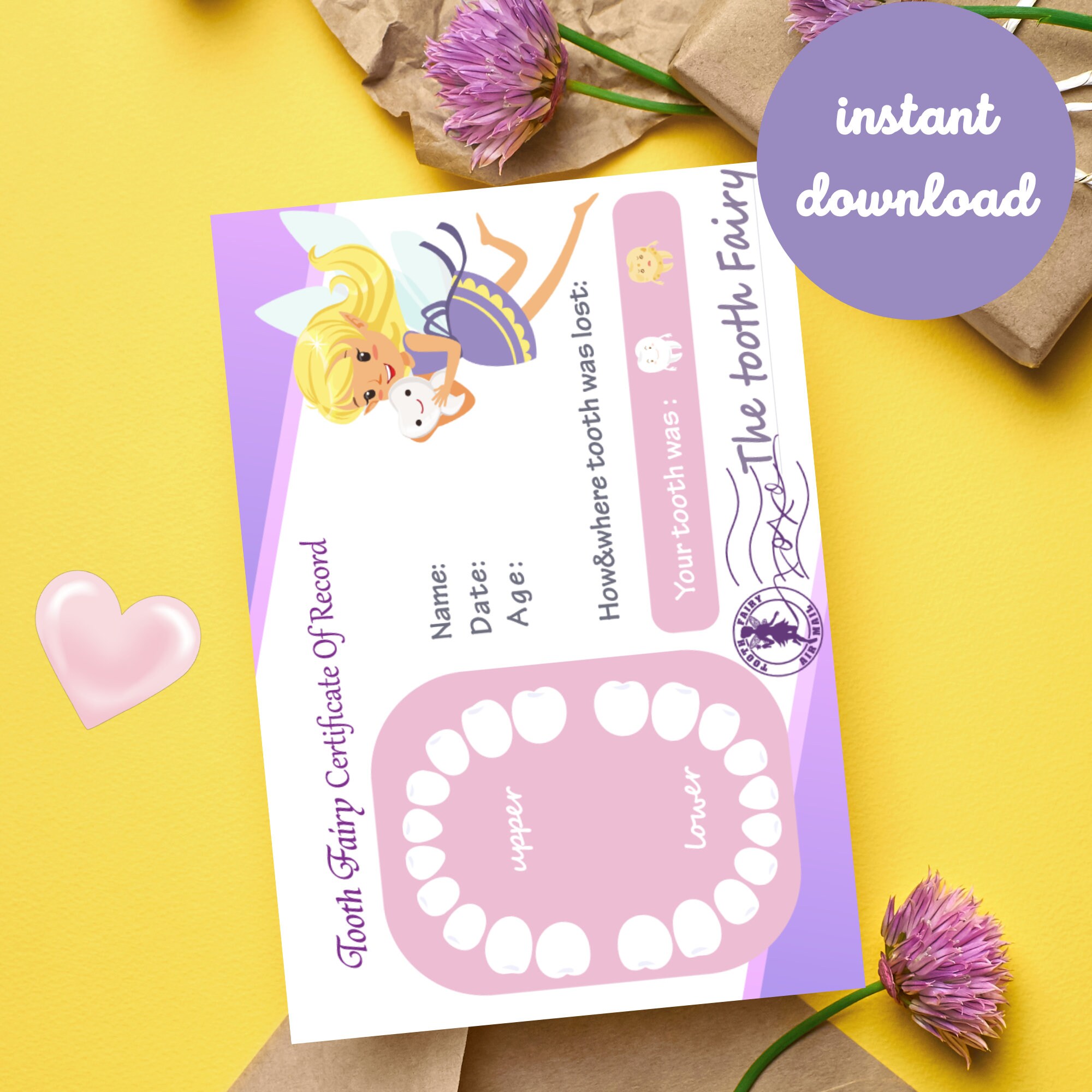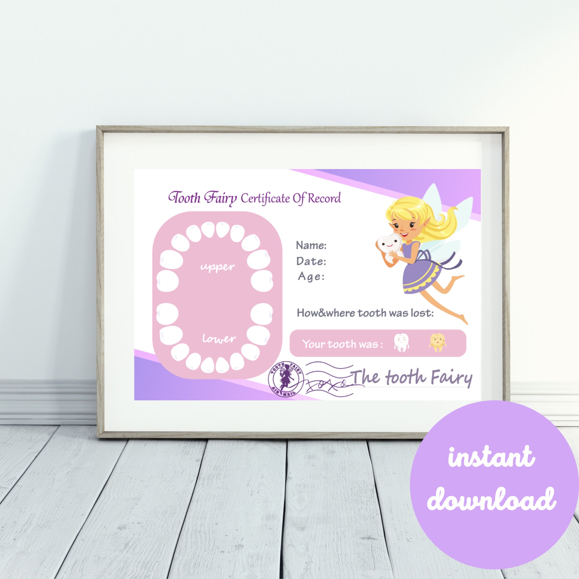 Printable tooth fairy certificate tooth fairy certificate etsy Artofit
