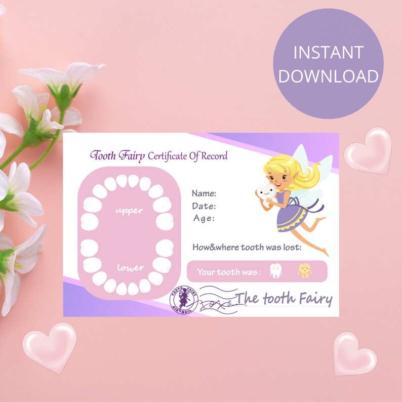 Tooth fairy pink certificate printable certificate Artofit