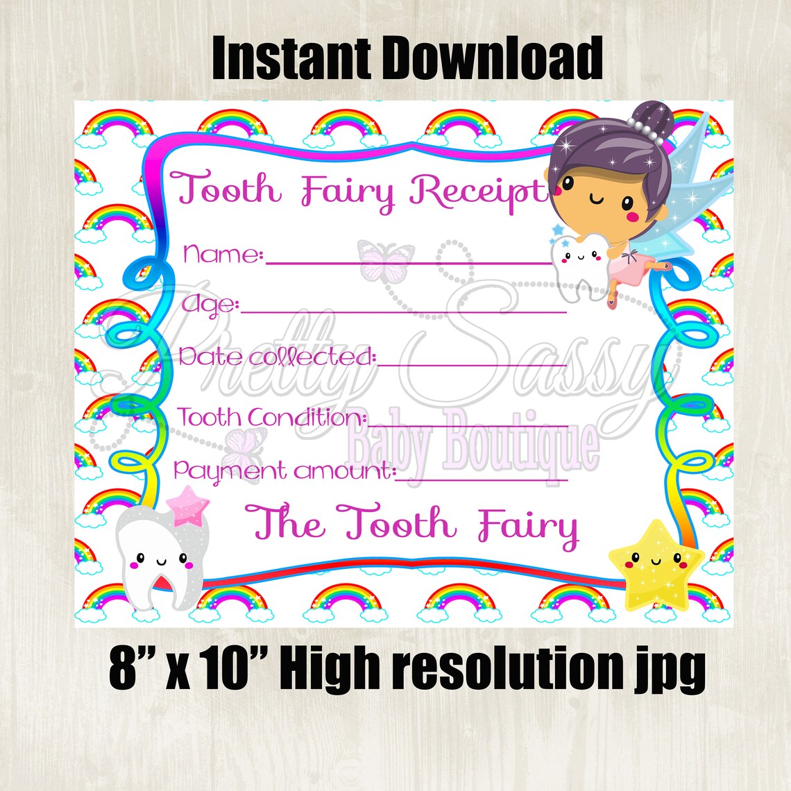 Tooth Fairy Receipt Printable * INSTANT DOWNLOAD Tooth Receipt Rainbow