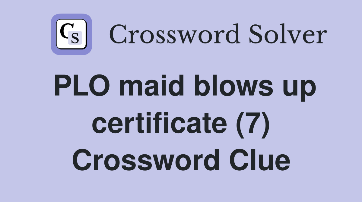 PLO maid blows up certificate (7) Crossword Clue Answers Crossword