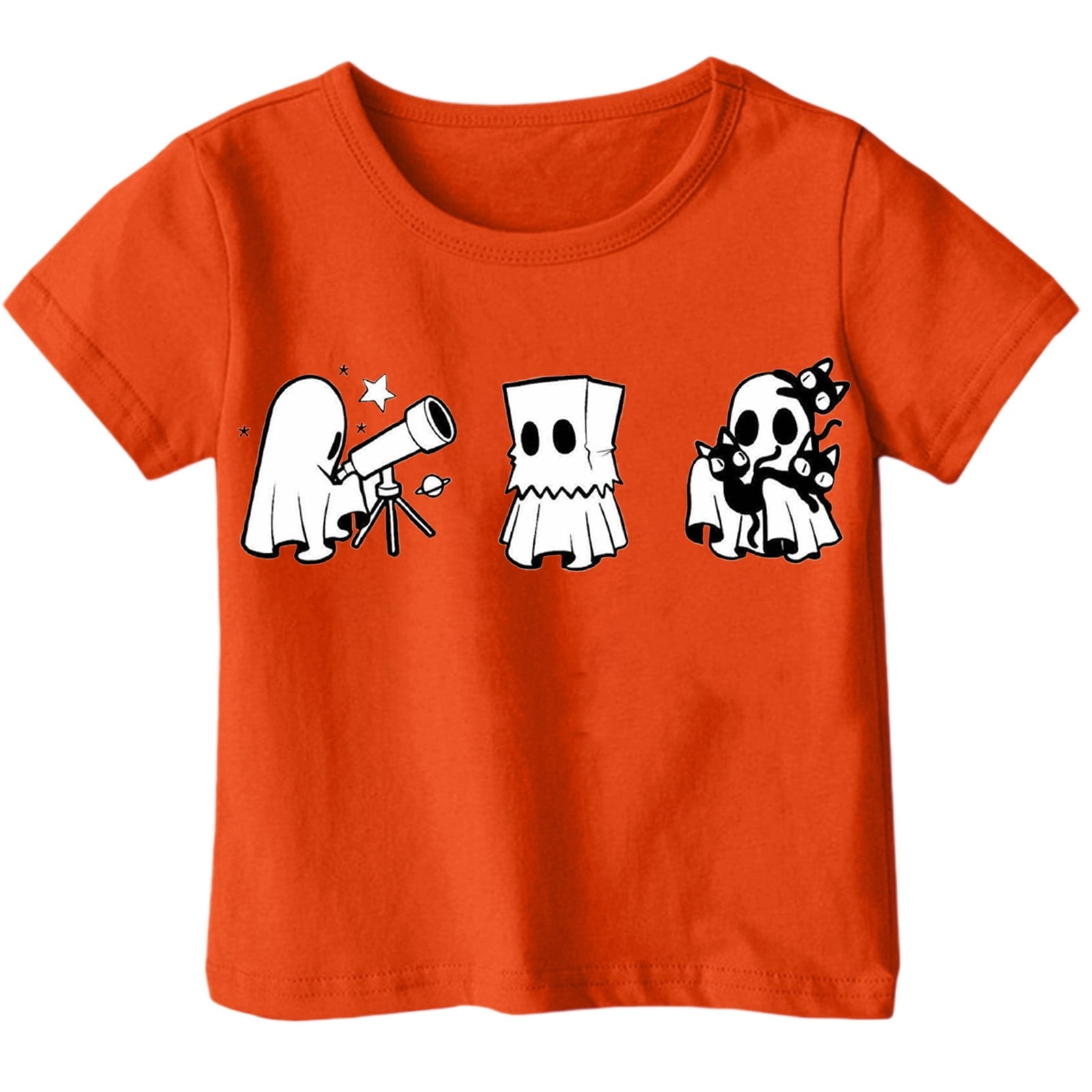Cute Girls Halloween Tee with Print Short Sleeve Top for Everyday Wear