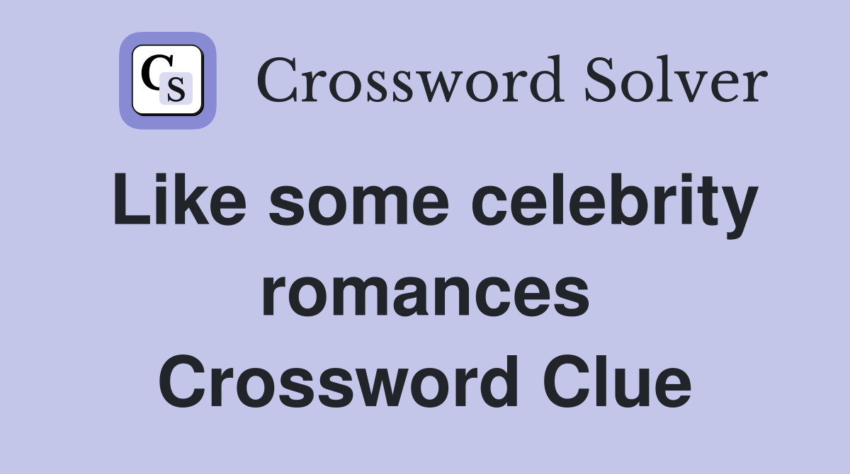 Like some celebrity romances Crossword Clue Answers Crossword Solver