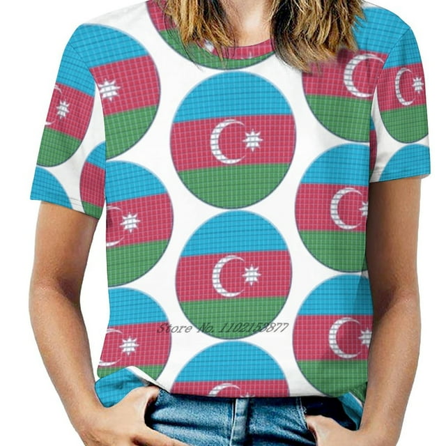 Azerbaijan Flag Rounded Squares Pixel Women Print T Shirt Summer
