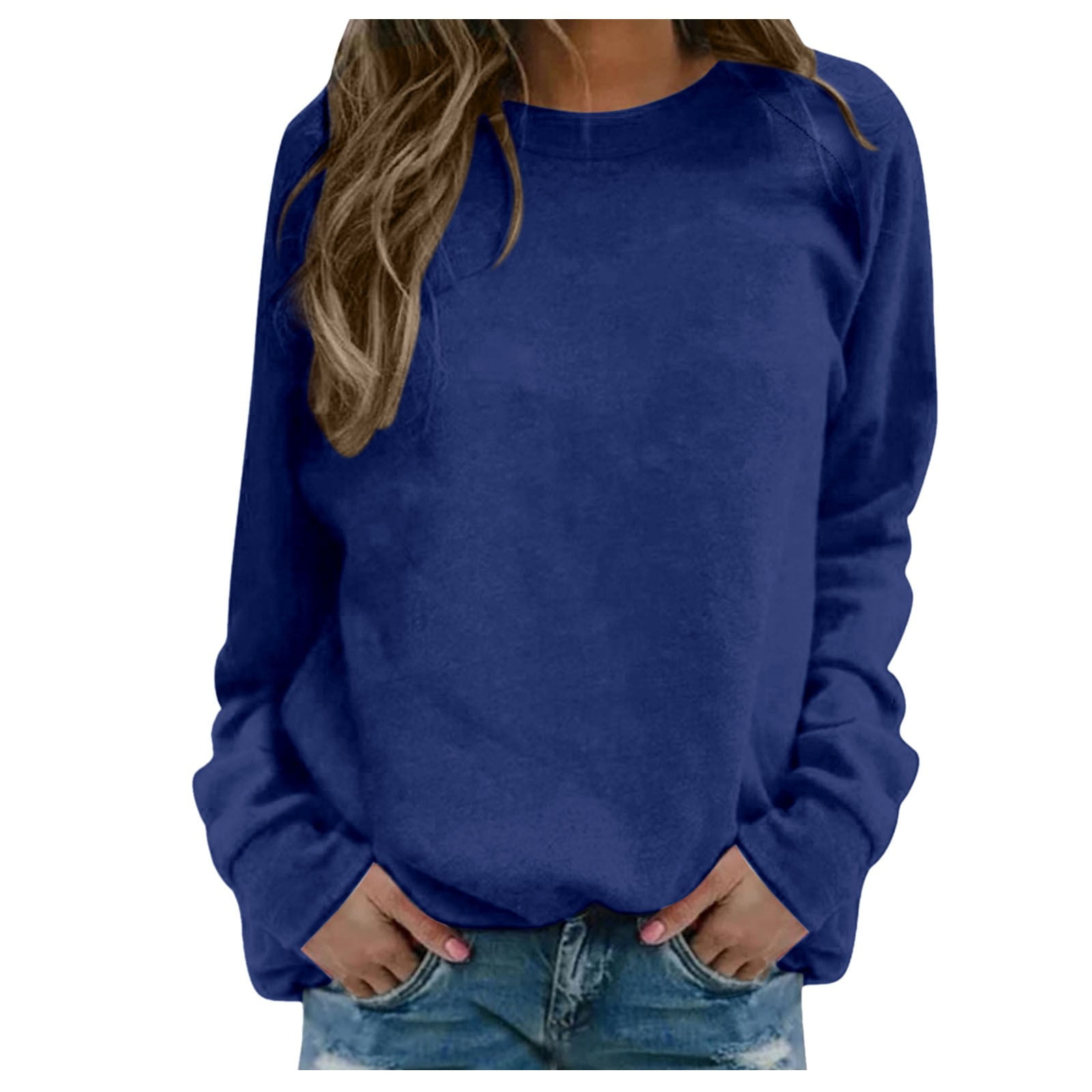 FINALGANG Women Versatile Sweatshirts Solid Color O Neck Long Sleeve