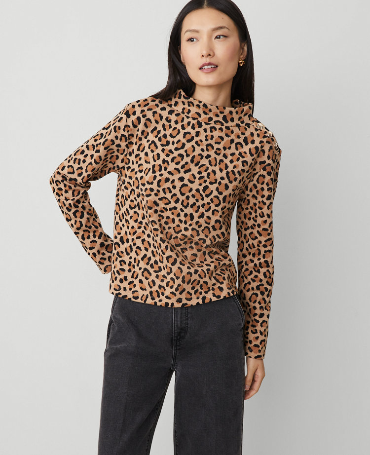 Animal Print Mock Neck Top
