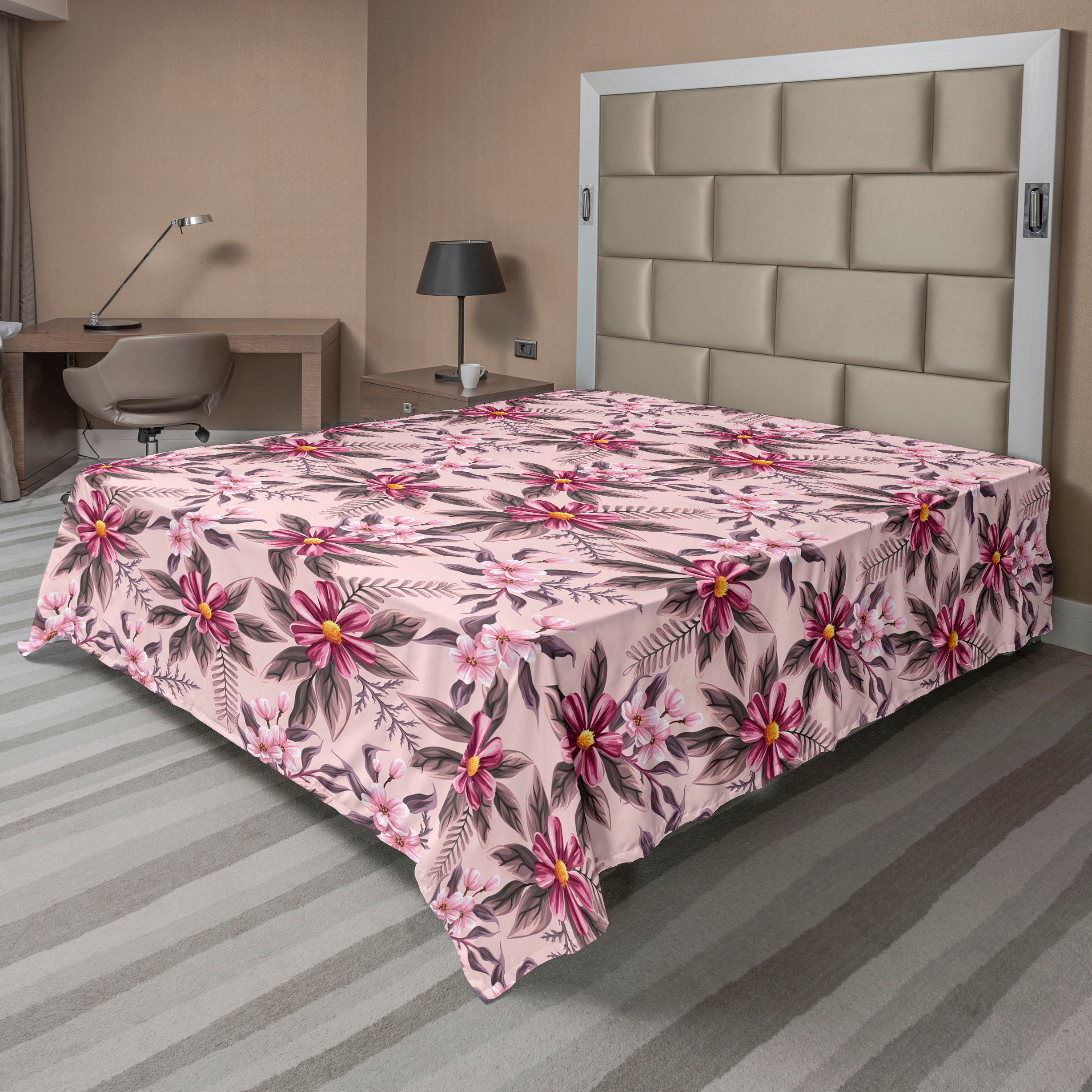 Ambesonne Floral Design Flat Bedding Sheet Soft Top Sheet Nostalgic