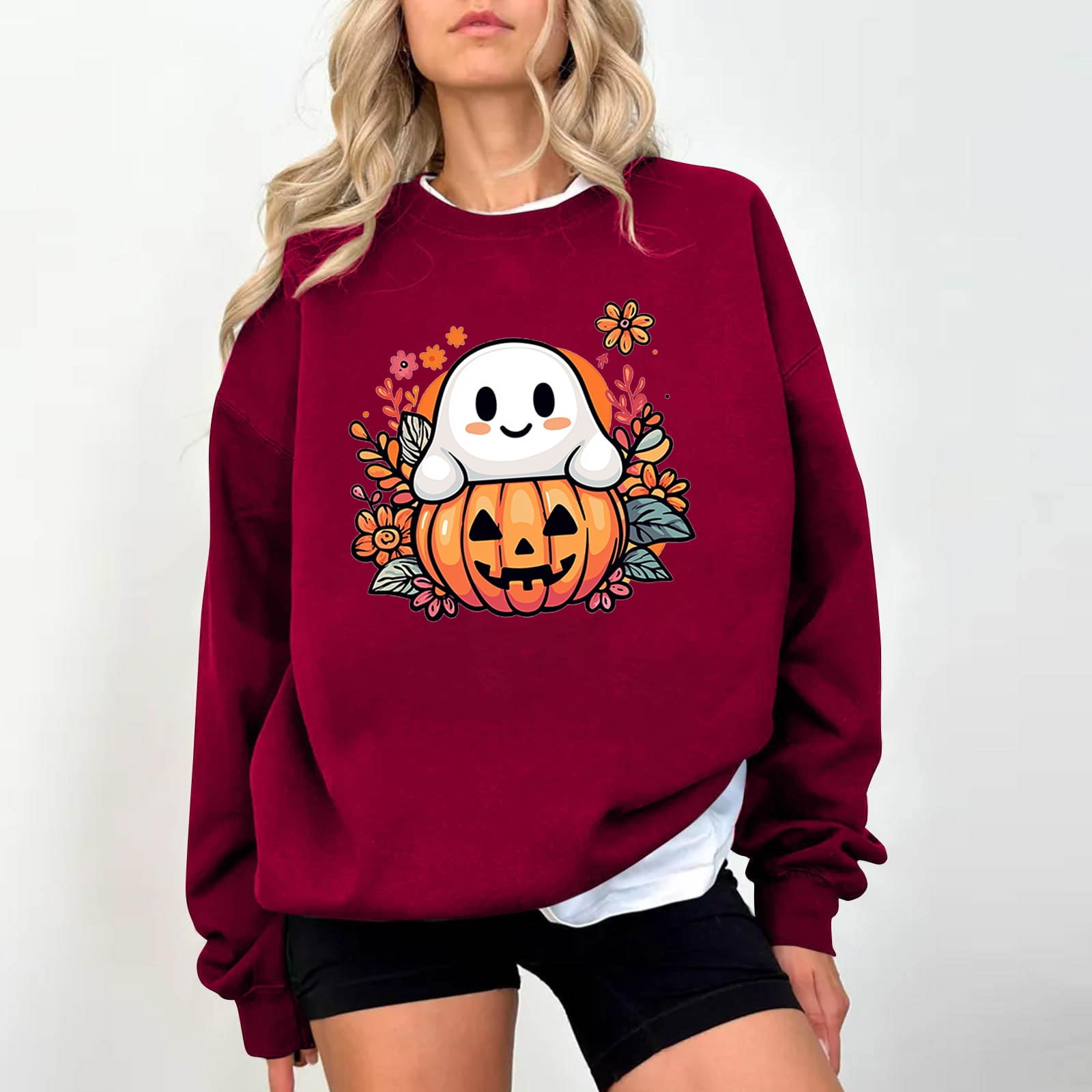 Delliss Women #39 s Halloween Print Long Sleeve Basic Top Loose Comfy Shirt