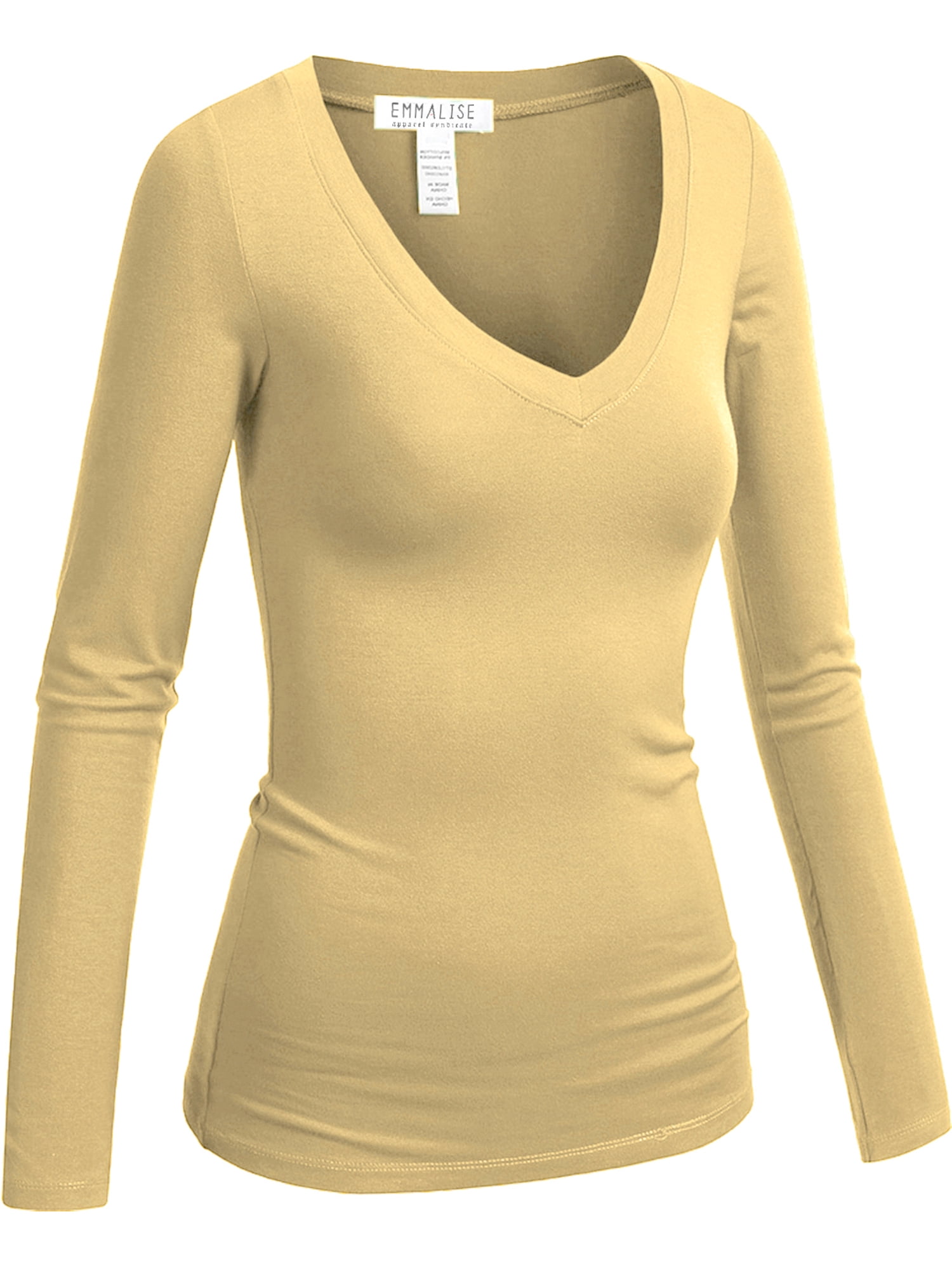 Emmalise Women #39 s Casual Basic V Neck Tshirt Long Sleeves Tee Top