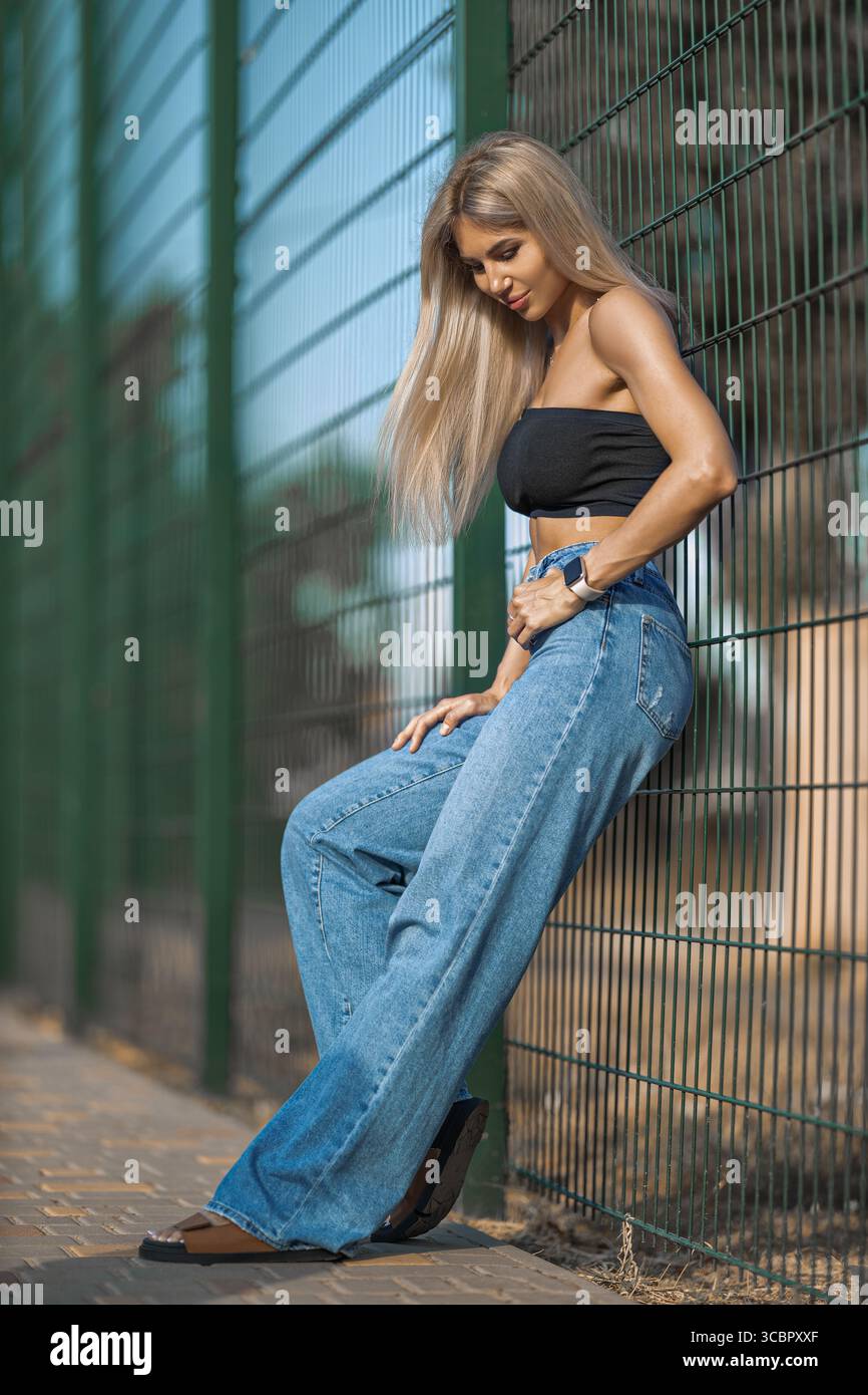 Wearing flowing top jeans hi res stock photography and images Alamy