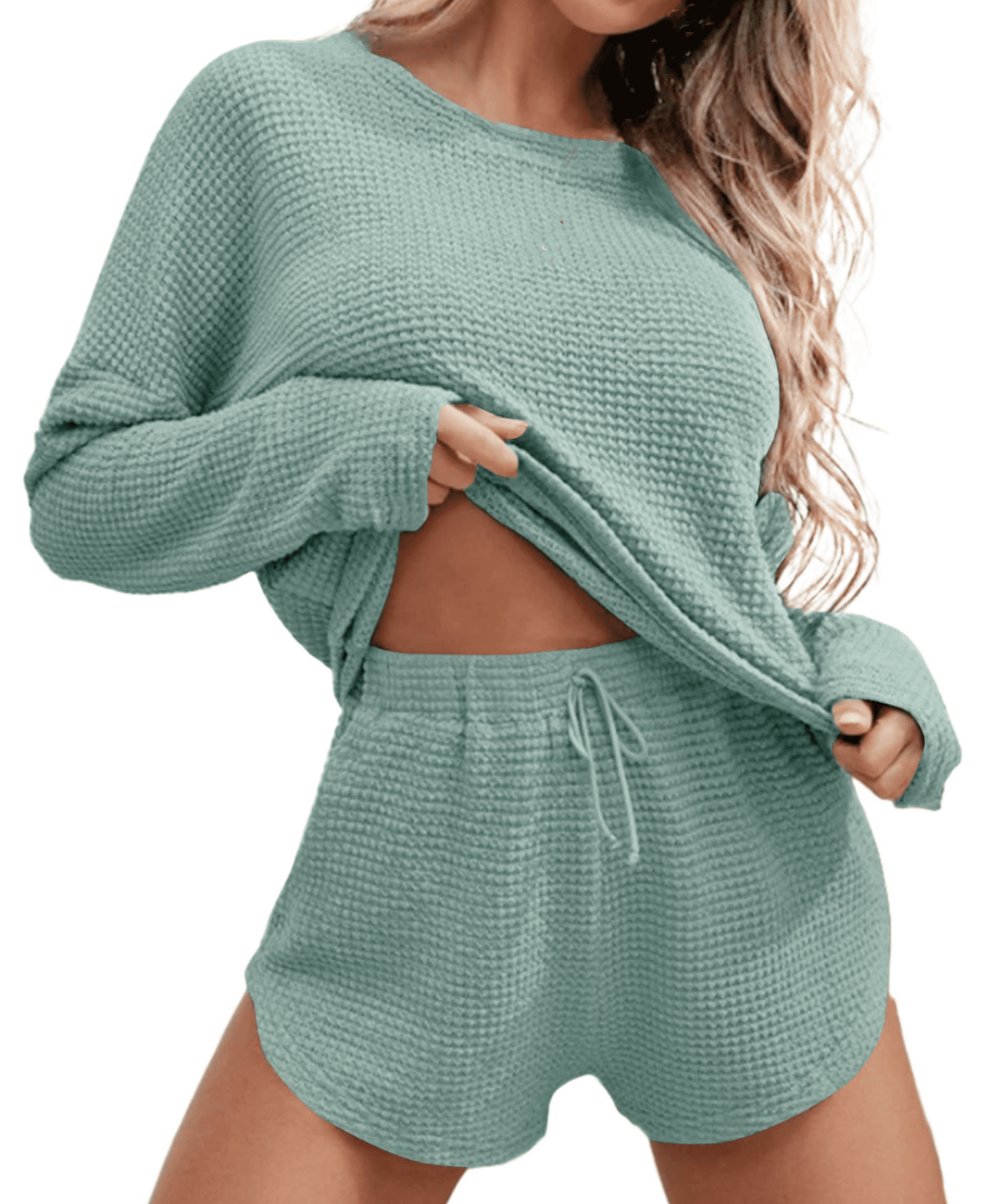 Fantaslook Pajamas Sets for Women Waffle Knit Lounge Sets Long Sleeve