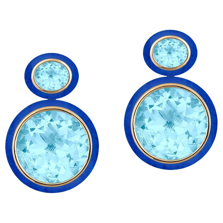 Goshwara Blue Topaz and Lapis Lazuli Oval Earrings For Sale at 1stDibs