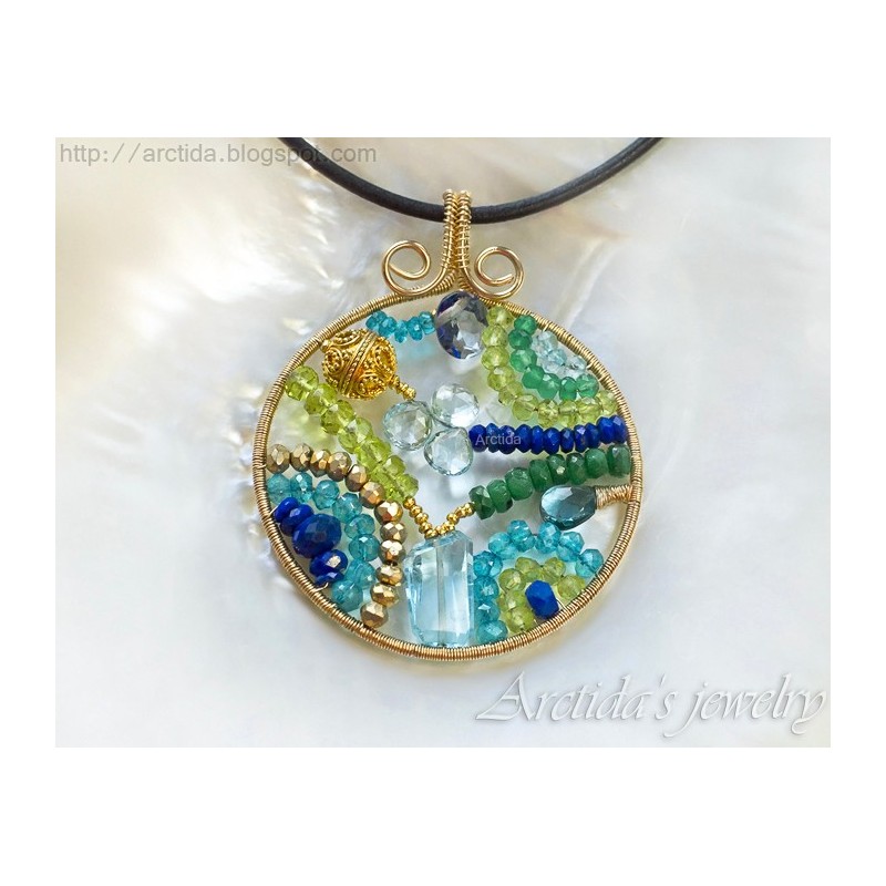 Mosaic necklace OOAK Apatite Emerald Iolite Lapis lazuli Peridot Pyrite