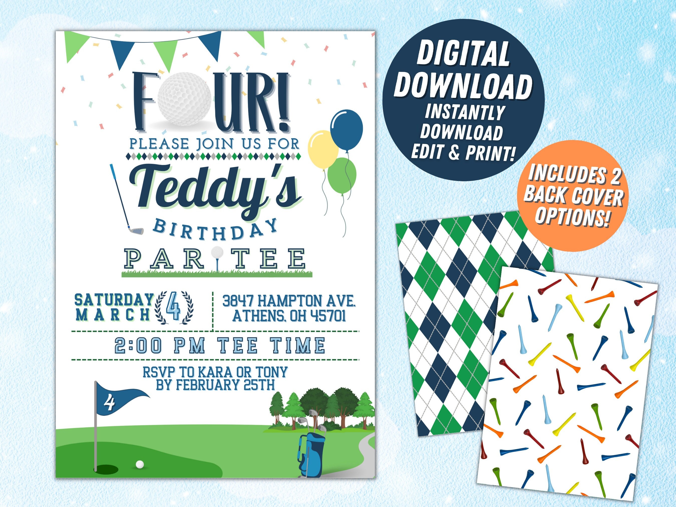 Four Golf Birthday Party Invitation Fore 4th Birthday Customizable