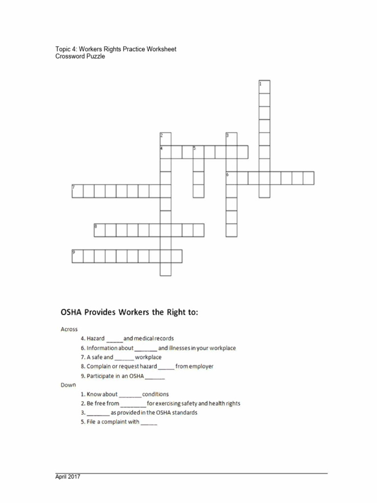 Osha Workers Rights Crossword Puzzle Answers prntbl
