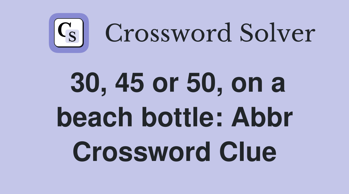 30 45 or 50 on a beach bottle: Abbr Crossword Clue Answers