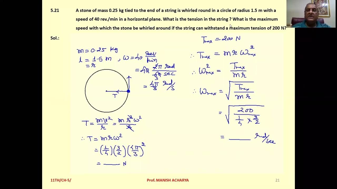 A stone of mass 0 25 kg tied to the end of a string in whirled round in