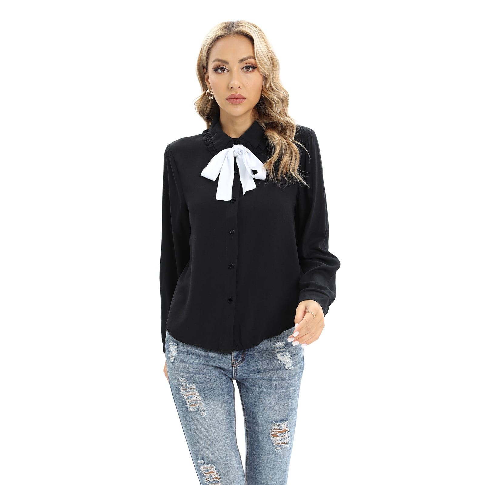 WBQ Women #39 s Bow Tie Peter Pan Collar Shirt Long Sleeve Chiffon Blouse