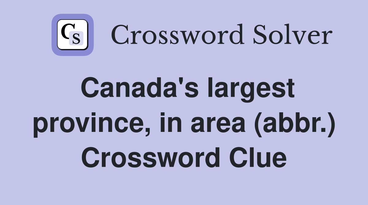 Canada s largest province in area (abbr ) Crossword Clue Answers