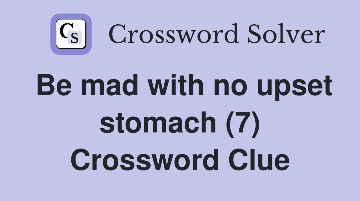Be mad with no upset stomach (7) Crossword Clue Answers Crossword