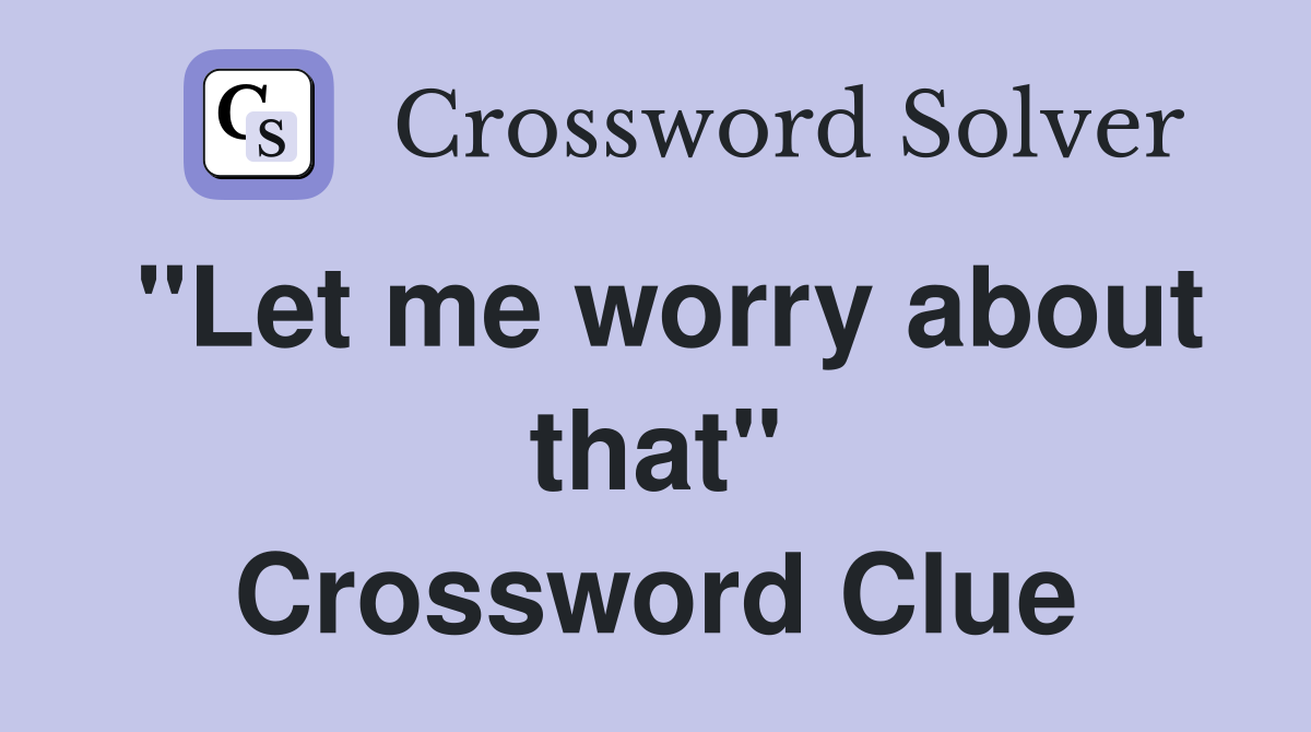 quot Let me worry about that quot Crossword Clue Answers Crossword Solver