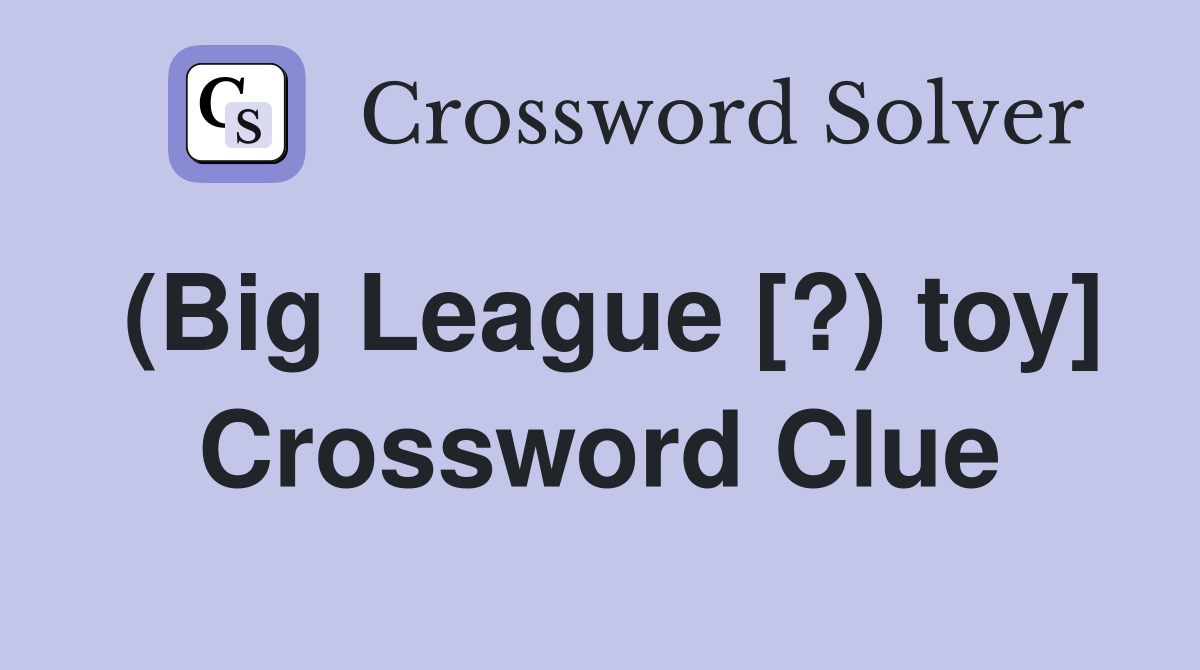 (Big League ?) toy Crossword Clue Answers Crossword Solver