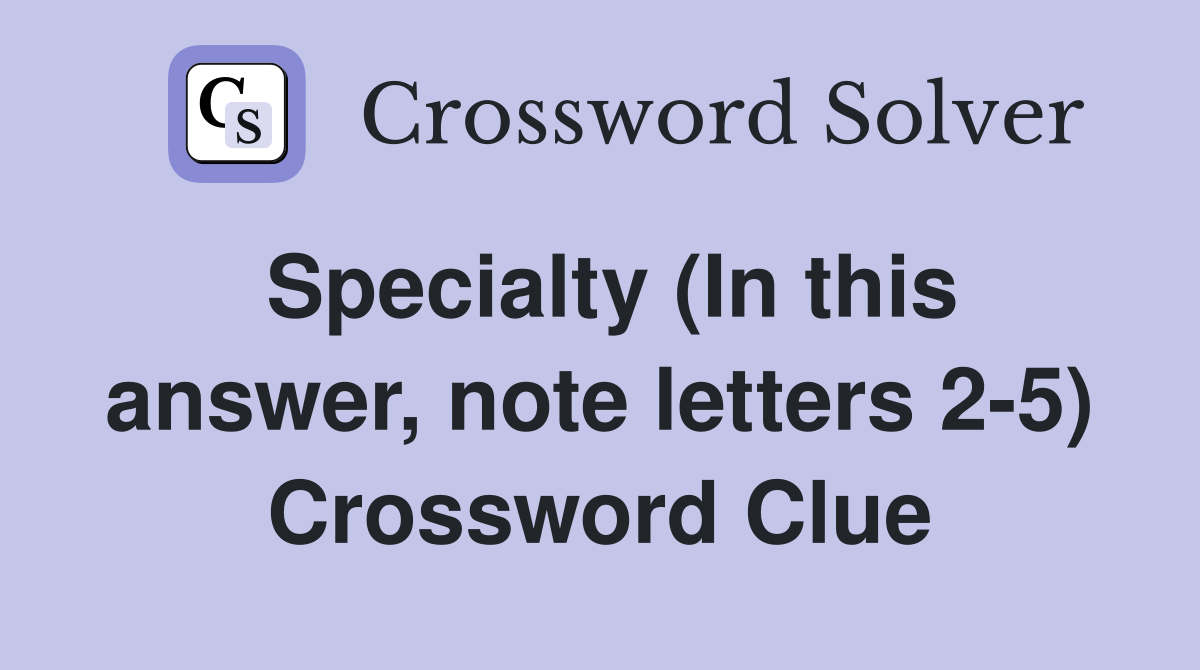 Specialty (In this answer note letters 2 5) Crossword Clue Answers