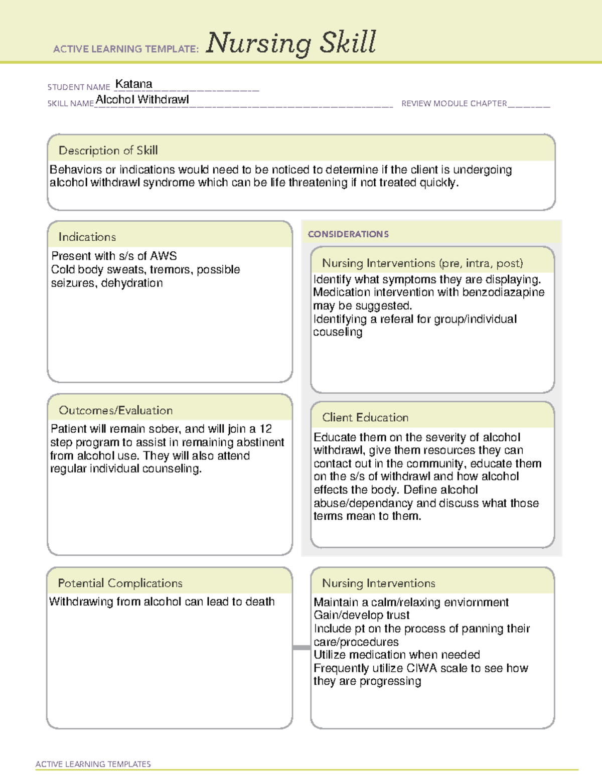 Active Learning Template Nursing Skill form ACTIVE LEARNING TEMPLATES