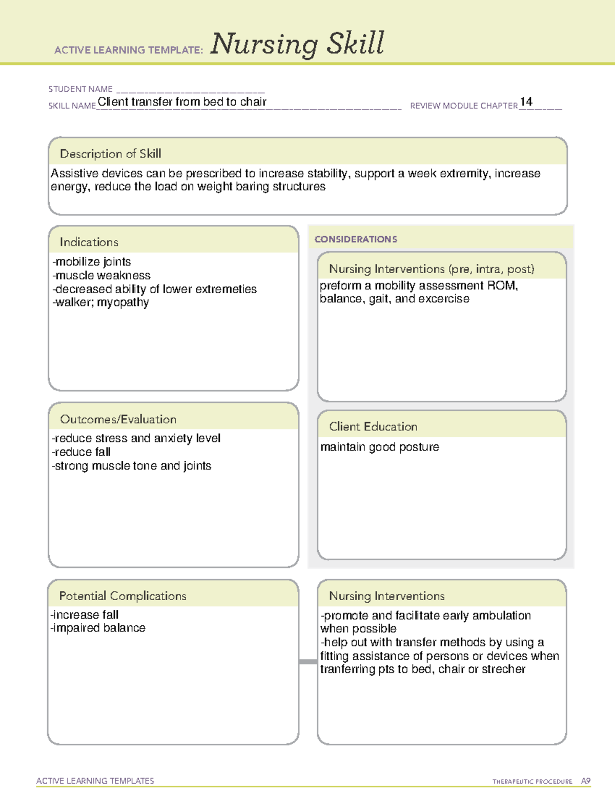 CH 14 Client transfer from bed to chair ACTIVE LEARNING TEMPLATES