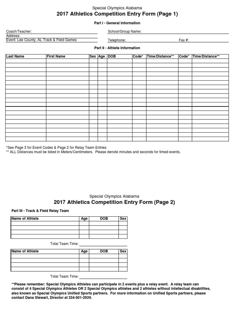SO Athletics Competition (Track and Field) Entry Form 2017 PDF