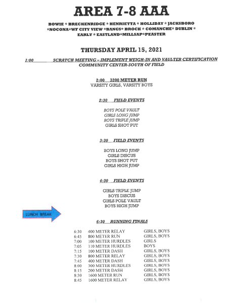 DISTRICT TRACK MEET SCHEDULE CHANGE San Augustine Independent
