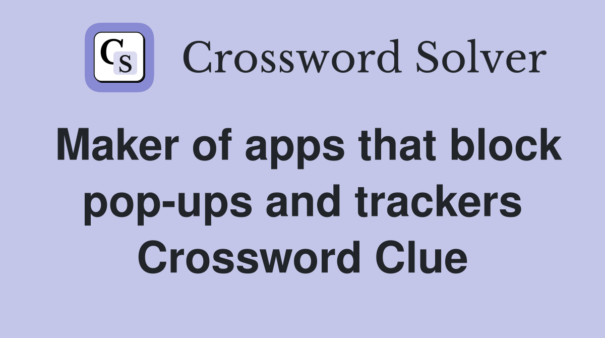 Maker of apps that block pop ups and trackers Crossword Clue Try Hard