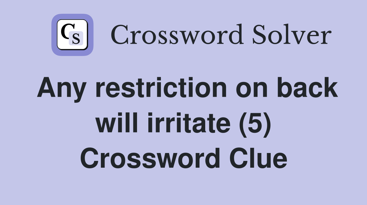 Any restriction on back will irritate (5) Crossword Clue Answers