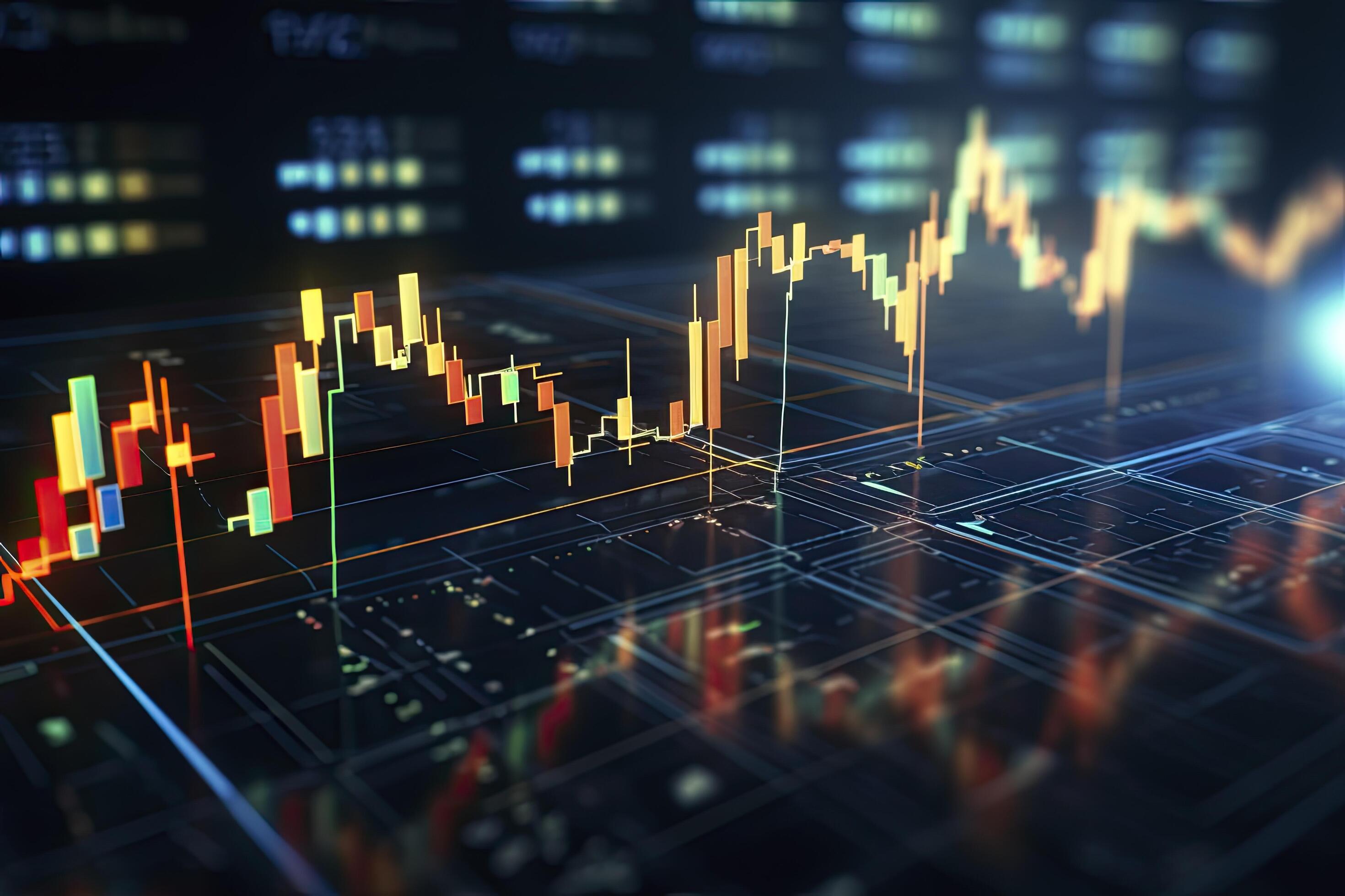 Futuristic Stock Market Graph with Candlestick Patterns and Data