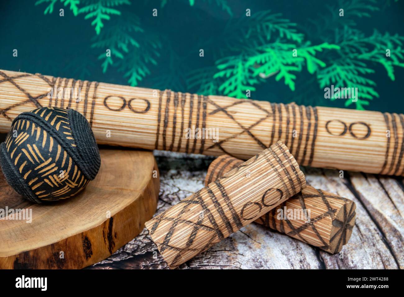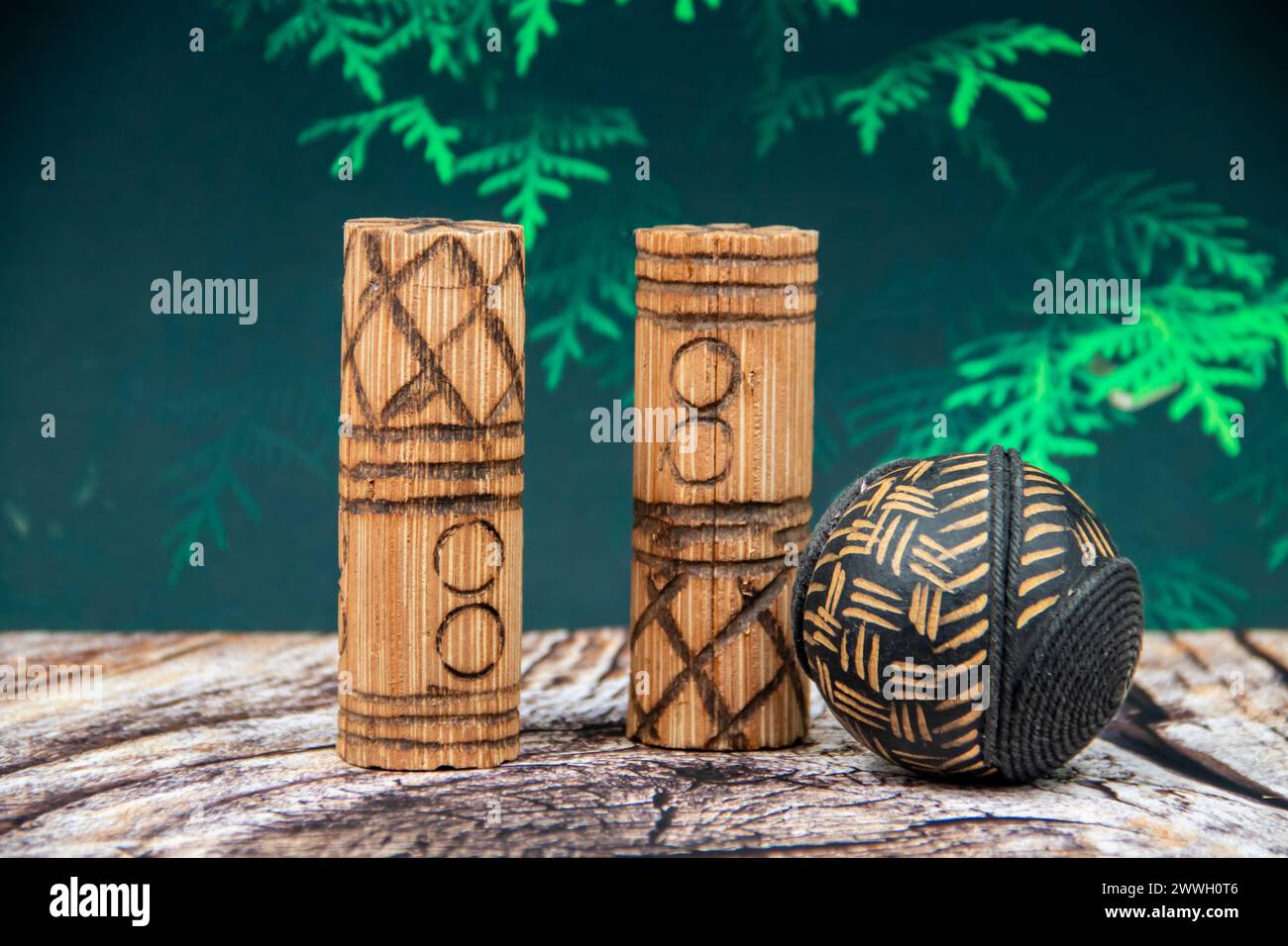 Musical traditional ethnical and tribal rhythmic idiophones made of