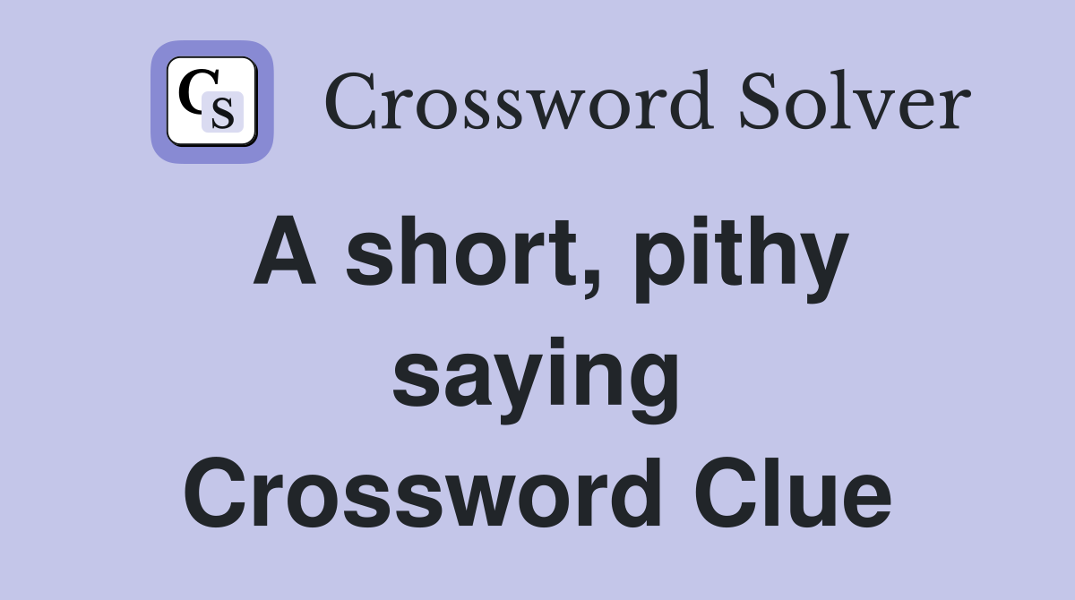 A short pithy saying Crossword Clue Answers Crossword Solver