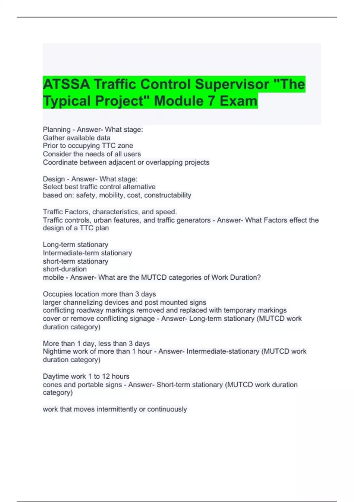 Traffic Supervisor Exam Questions And Correct Answers ATSSA Stuvia US