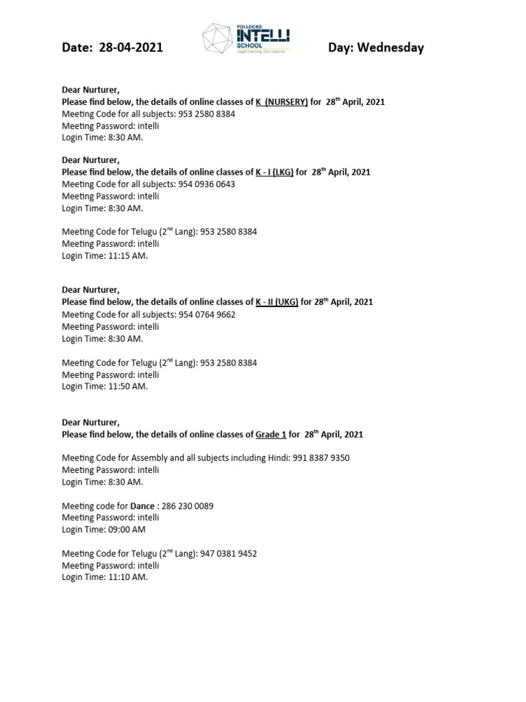 28th April Zoom Codes Online Classes PDF Computer Access Control