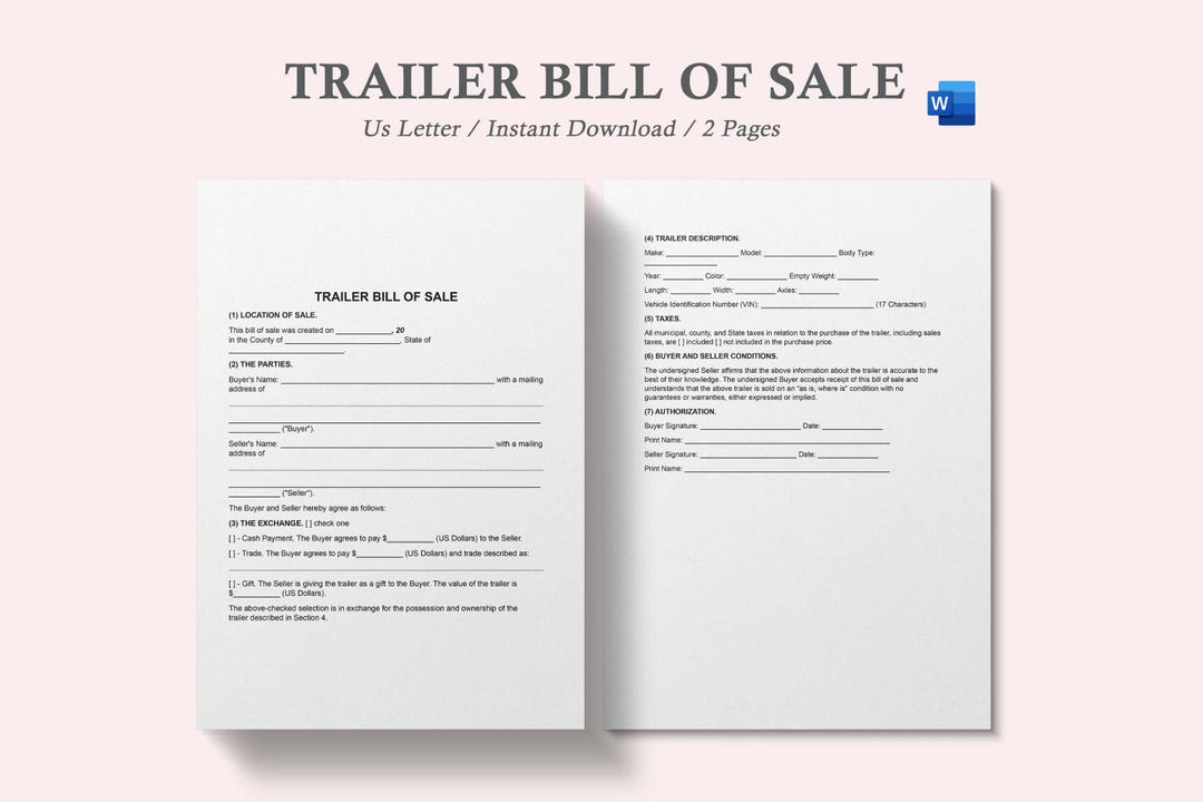 Trailer Bill of Sale Blank Printable Form Template in PDF Word in