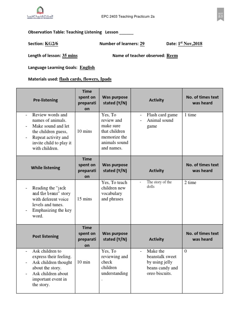 Observation Task 5 Listening 2 PDF Language Acquisition Human
