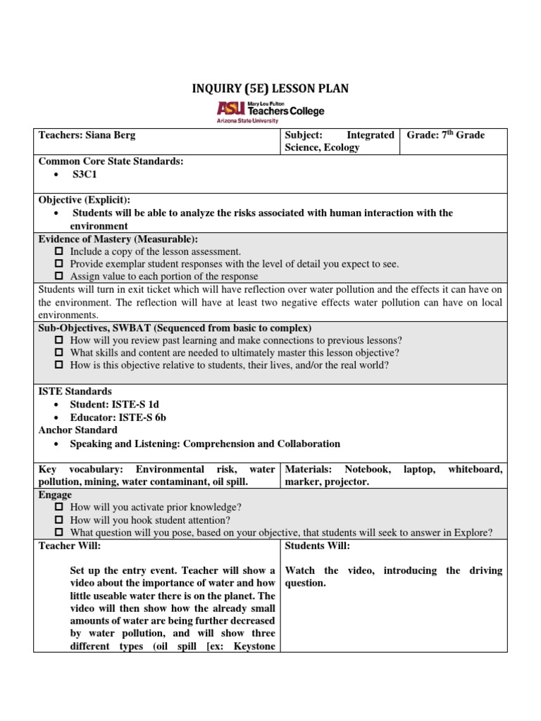 Inquiry 5e Lesson Plan Template PDF Question Teachers