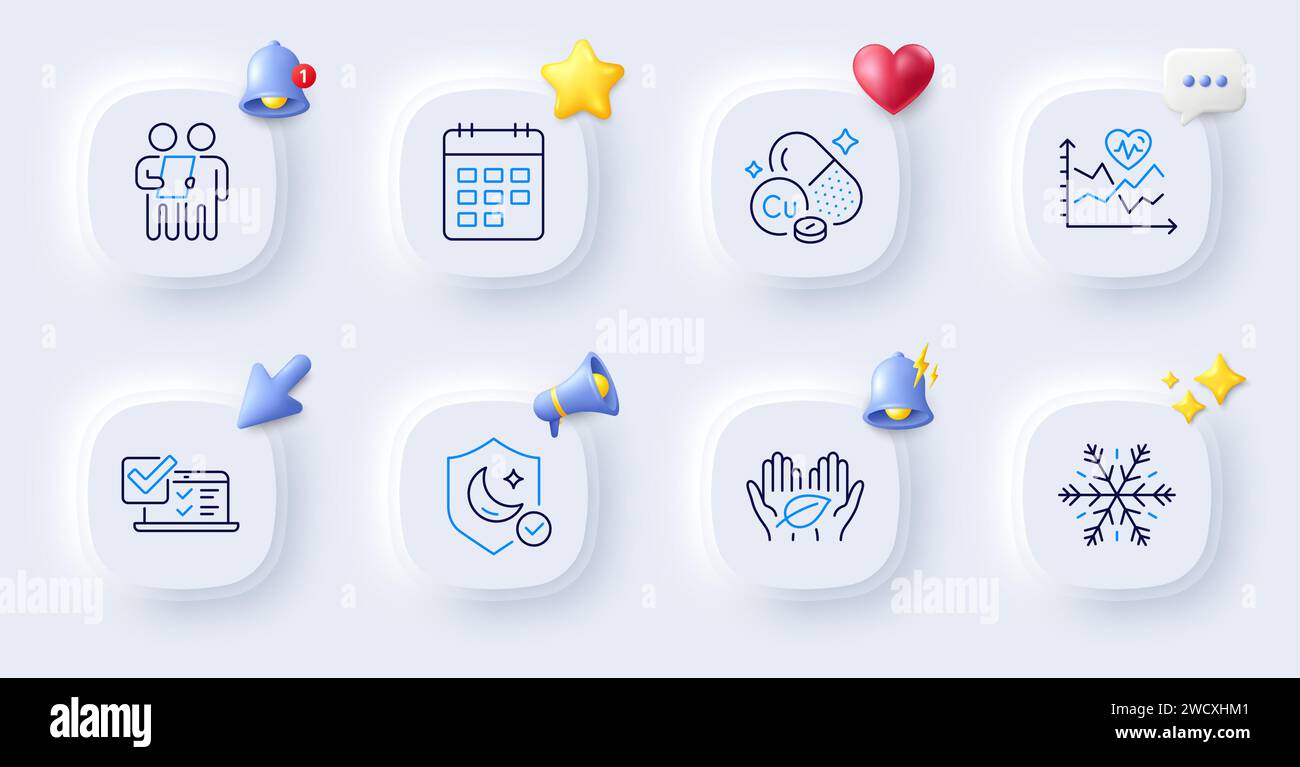 Cardio training Calendar and Online survey line icons For web app