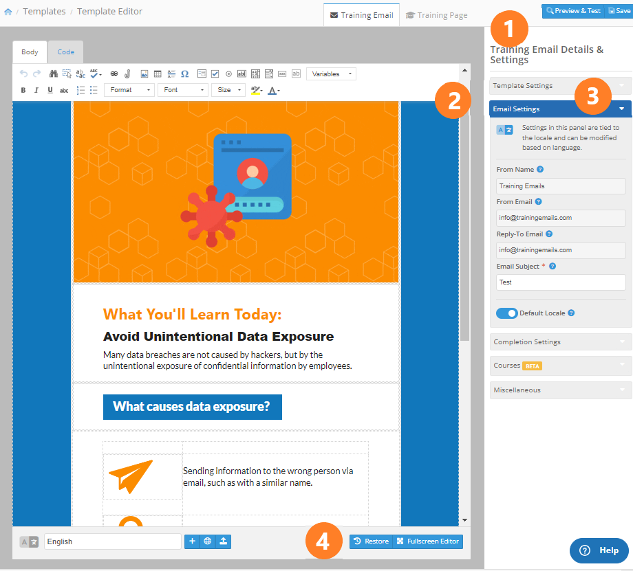 Training Email Template Editor Support Center