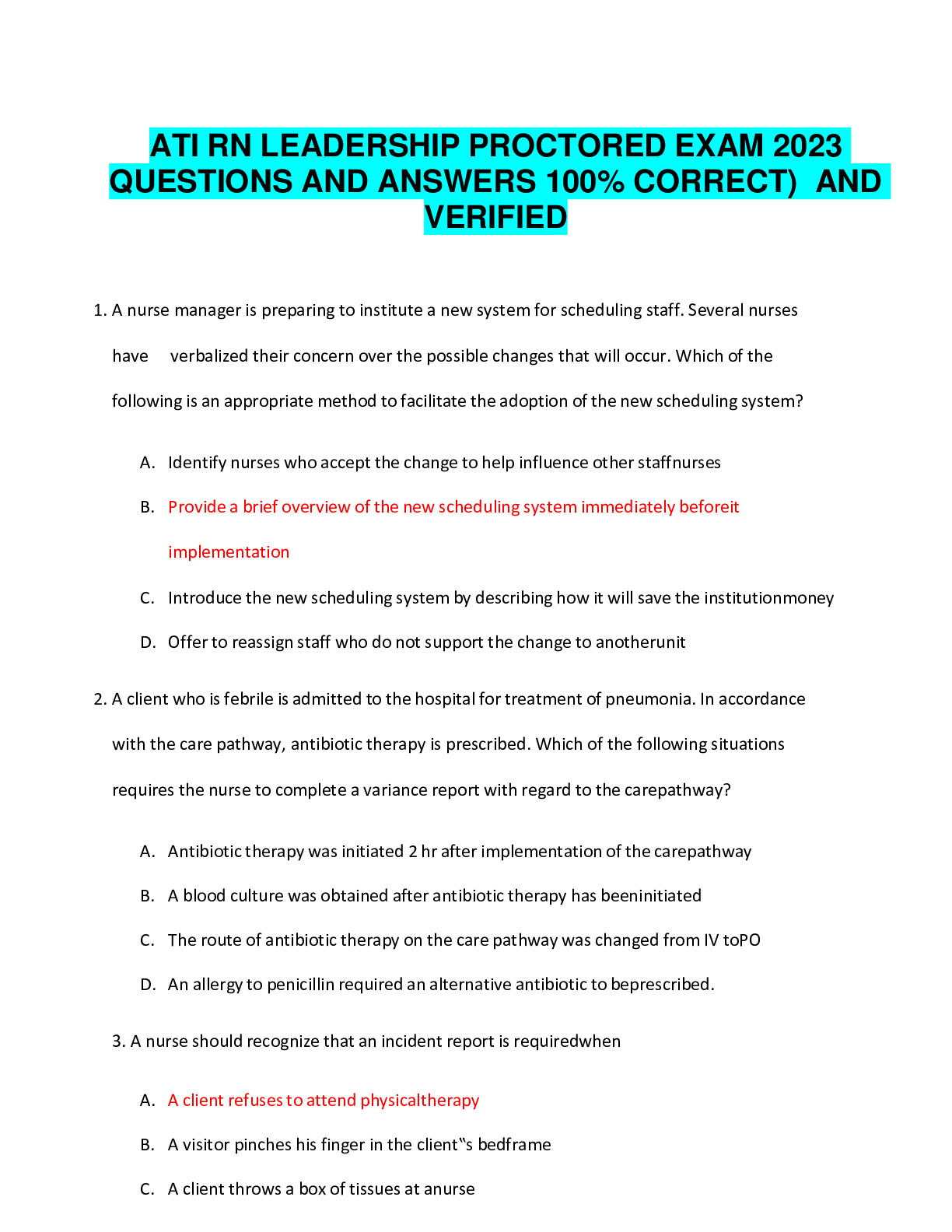 ATI RN LEADERSHIP PROCTORED EXAM 2023 QUESTIONS AND ANSWERS 100%