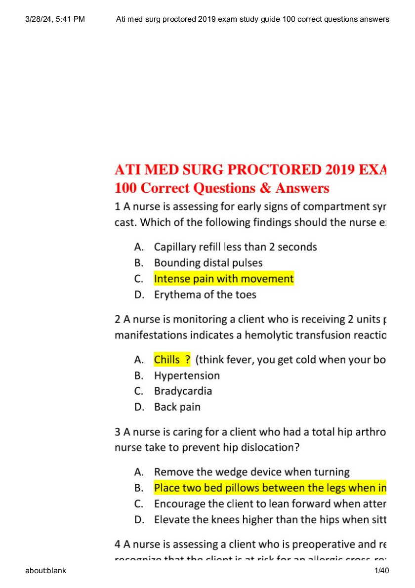 Ati med surg proctored 2019 exam study guide 100 correct questions