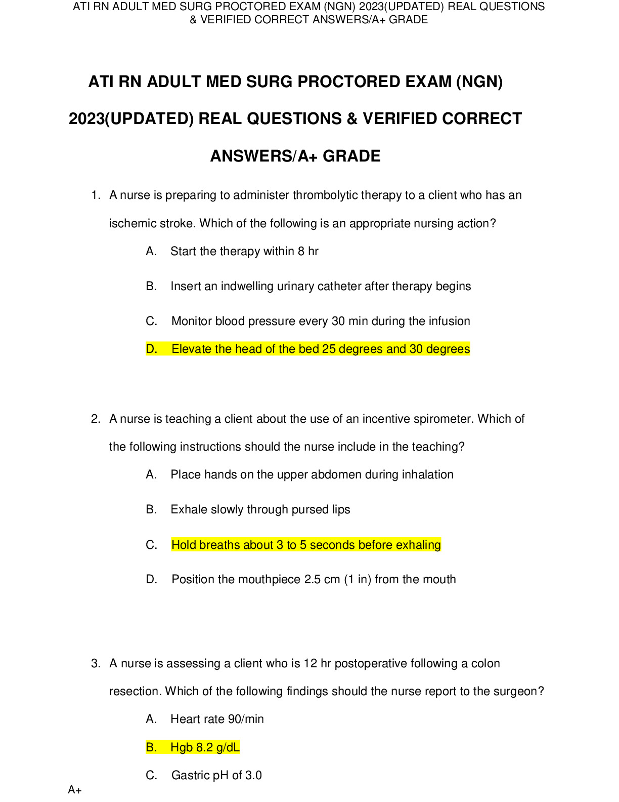 ati rnmed surg proctored exam ngn 2023 updated DocMerit