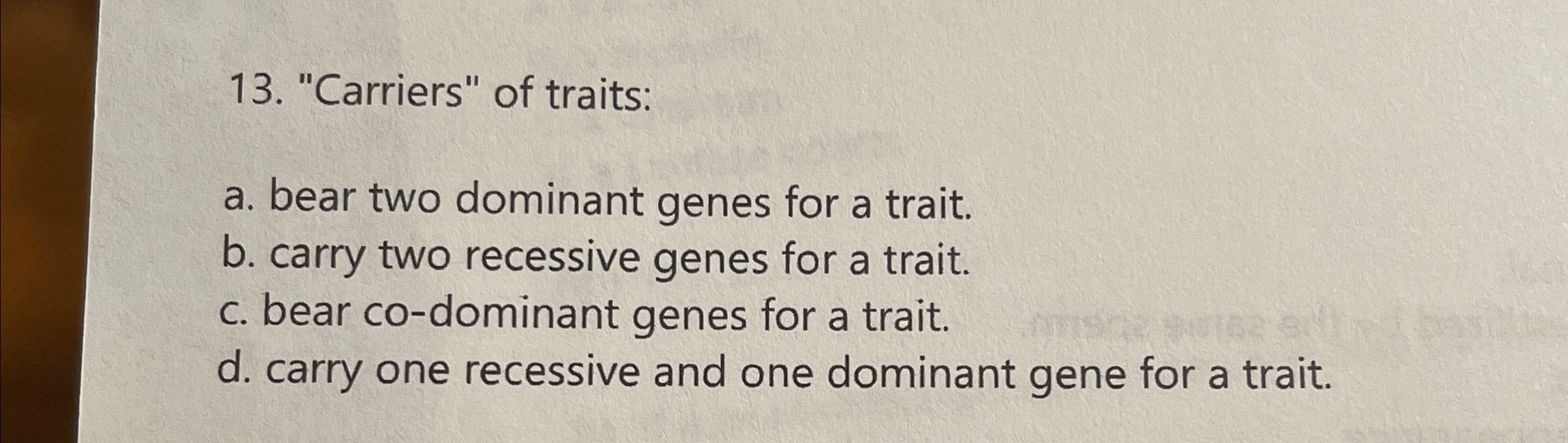 Solved Carriers of traits:a bear two dominant genes for Chegg com