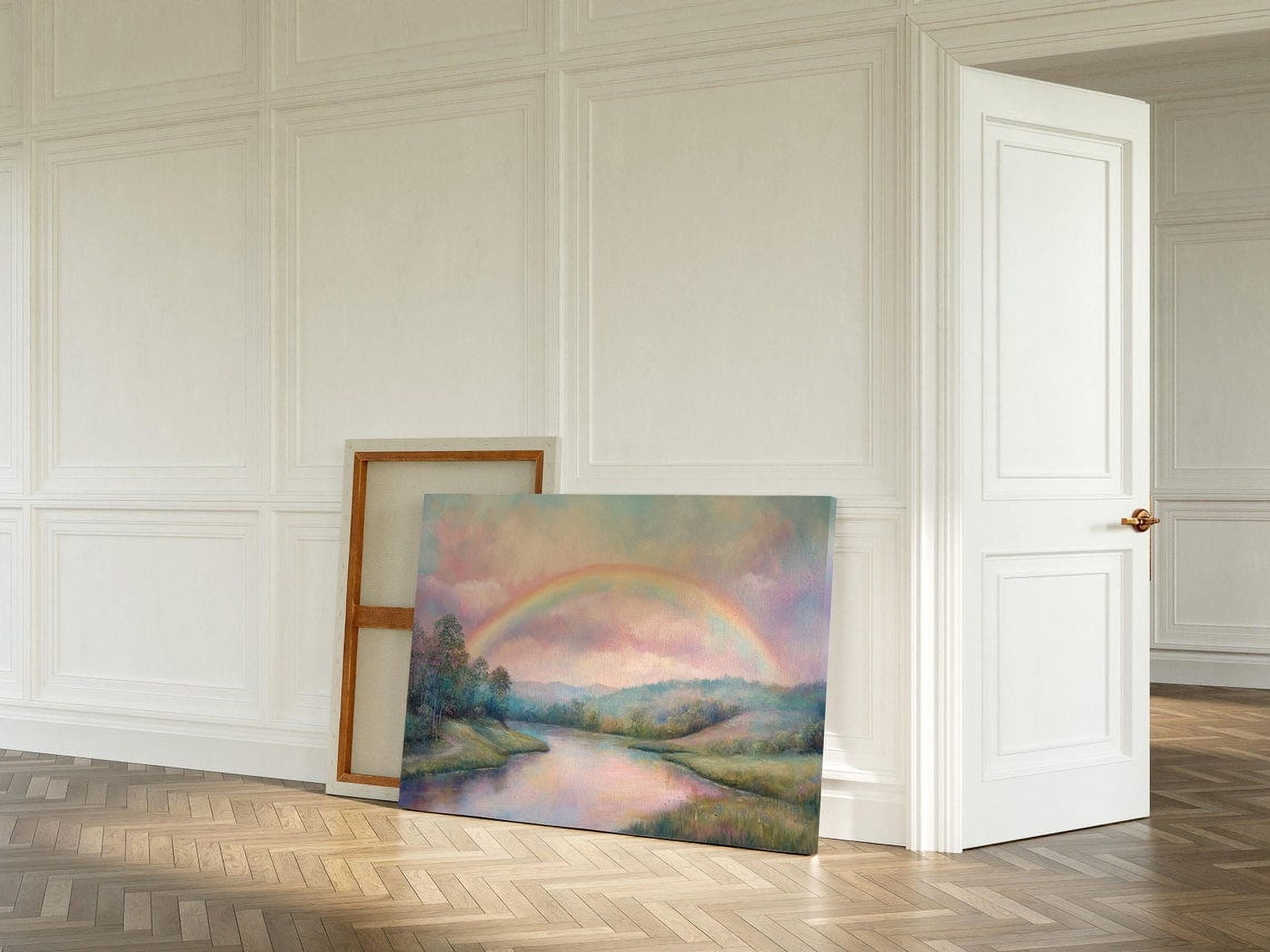 DOPAPRINT Pastel Rainbow Over Tranquil River Landscape Wall Art