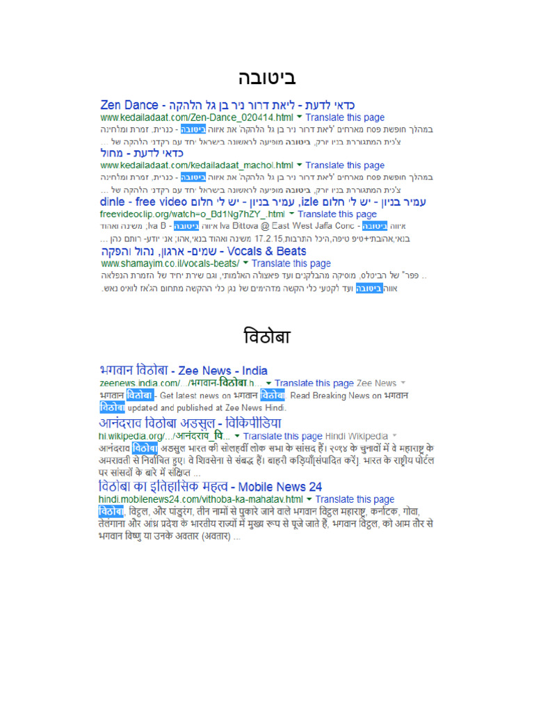 Vithoba Hebrew Arabic Urdu Hindi Punjabi Marathi Sanskrit Kannada