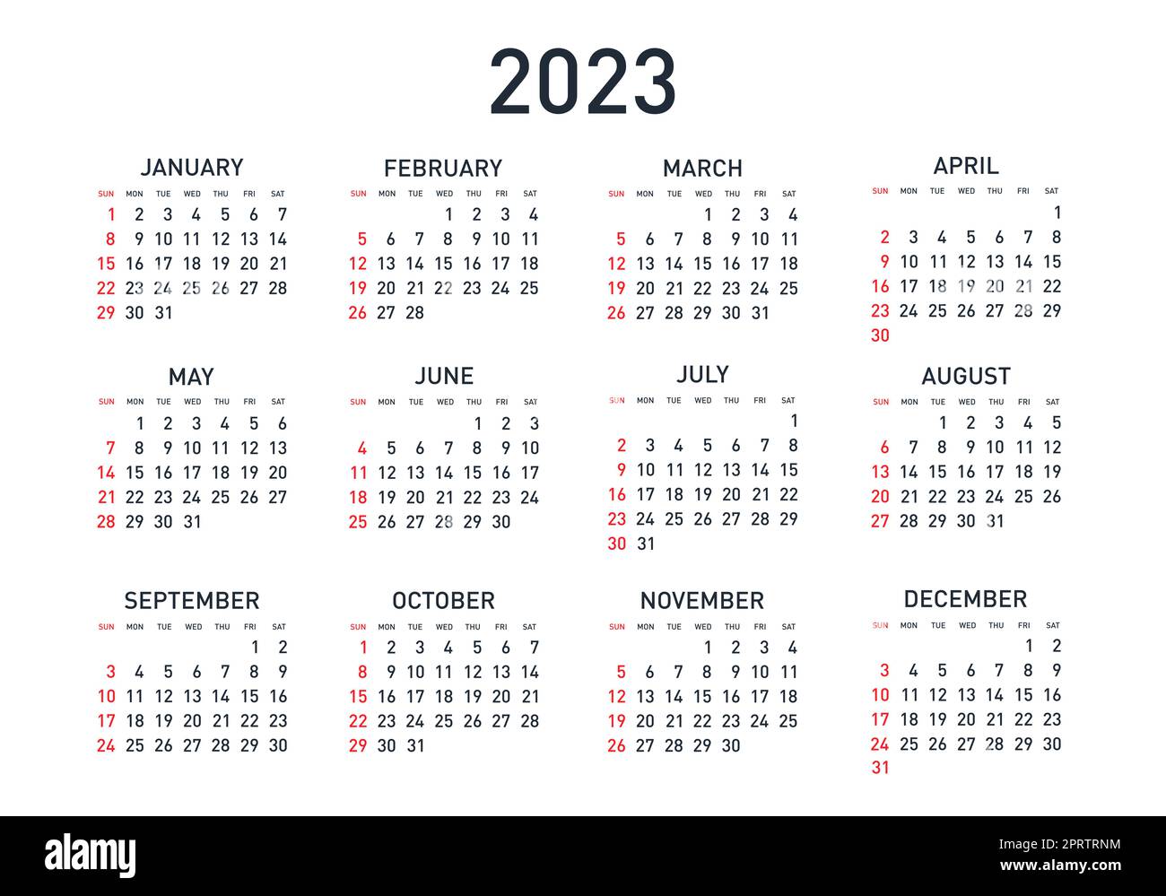 Calendar 2023 year Black and white vector template Week starts on